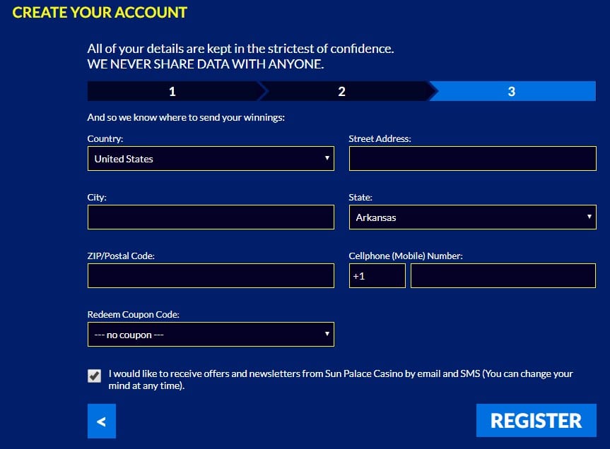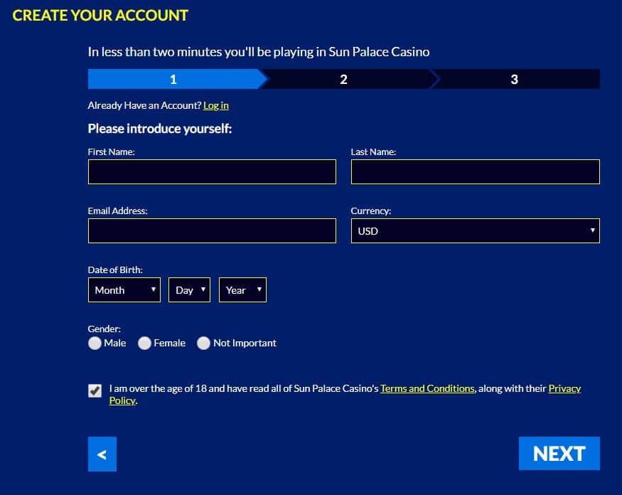 Signing up to Sun Palace Casino is easy with the following steps: