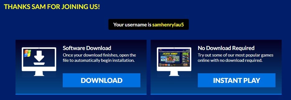 - Registration is now complete! It will then prompt you whether you want to download the software or go to instant play (we recommend using instant play).